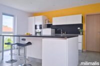 Dès l’entrée, un espace central distribue harmonieusement la maison, sur la droite, vous profitez d’un superbe espace de vie baigné de lumière avec cuisine ouverte, salle à manger et salon bénéficiant d’une belle hauteur sous plafond et de larges baies vitrées ouvertes sur l’extérieur.Un poêle vient compléter cet espace et apporte une atmosphère chaleureuse et conviviale.