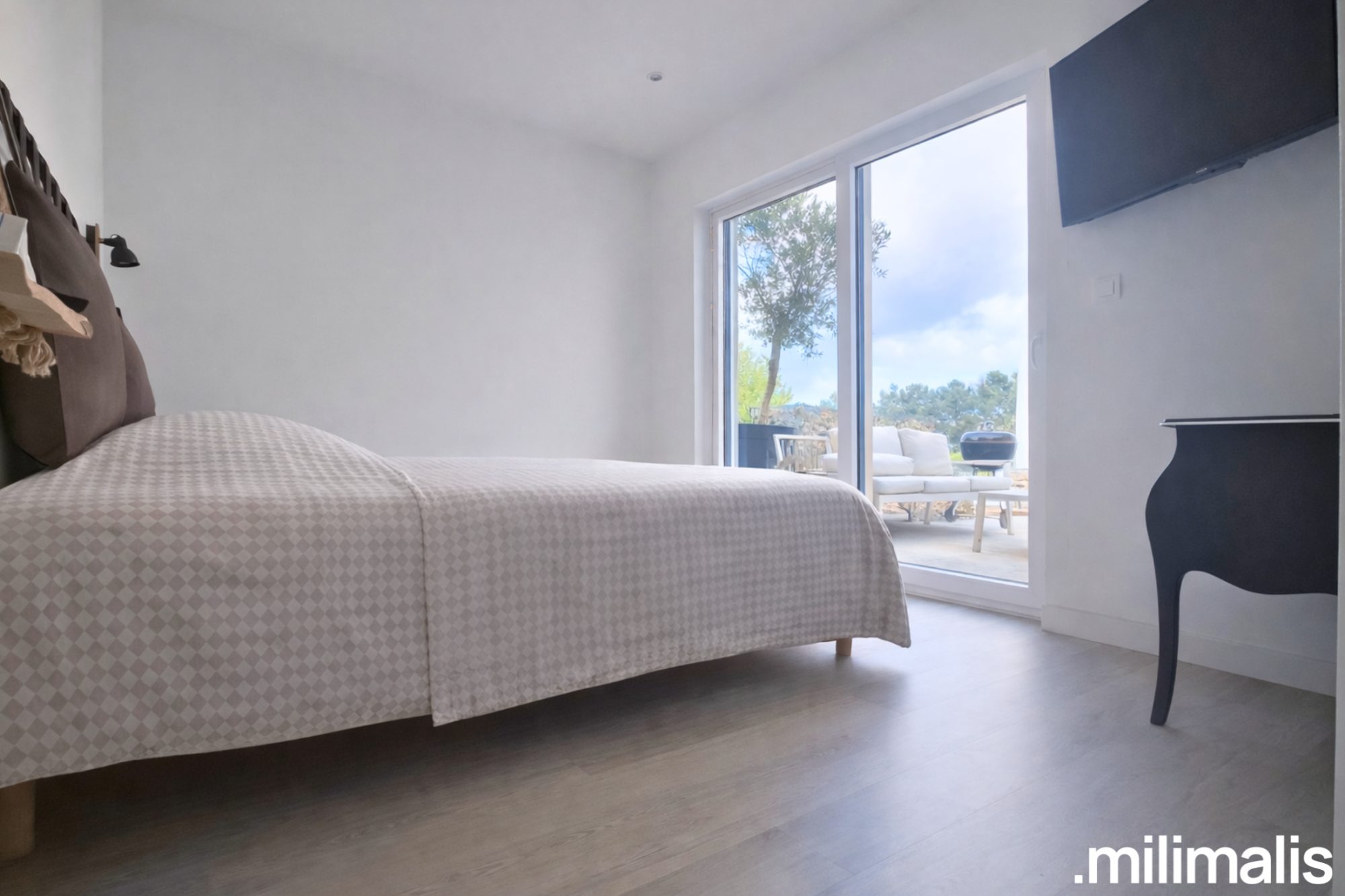 La maison s’articule autour d’une terrasse intimiste en cœur de maison, accessible depuis les différentes pièces de vie et de nuit, offrant un véritable espace extérieur protégé, idéal pour un coin repas et détente, agréable à vivre aussi bien de jour que de nuit, avec un accès direct à une piscine chauffée.